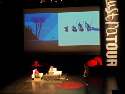 Y para acabar esta primera parte, el ilustrador Chris Haughton nos habló de su trayectoria profesional, destacando especialmente su álbum "Un poco perdido", y sus últimos proyectos editoriales, como "SShhhh... tenemos un plan", una idea que toma forma de álbum y que surge a raíz de un trabajo realizado en su etapa universitaria.